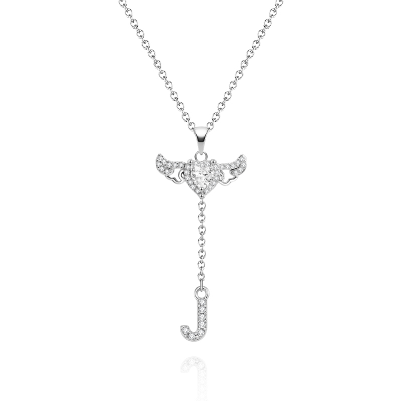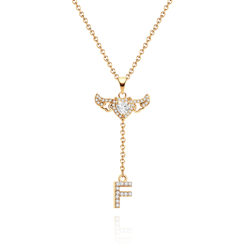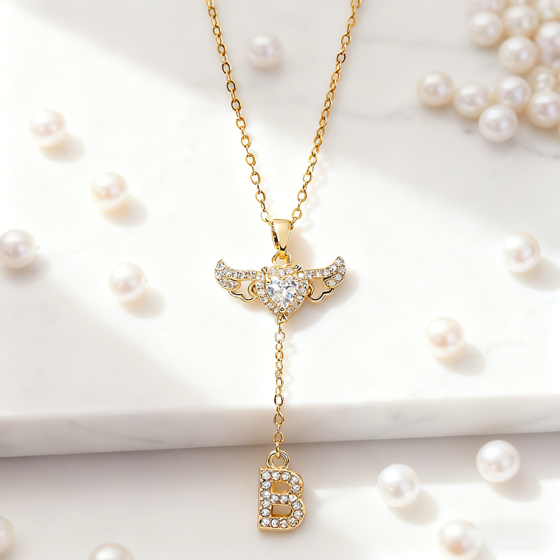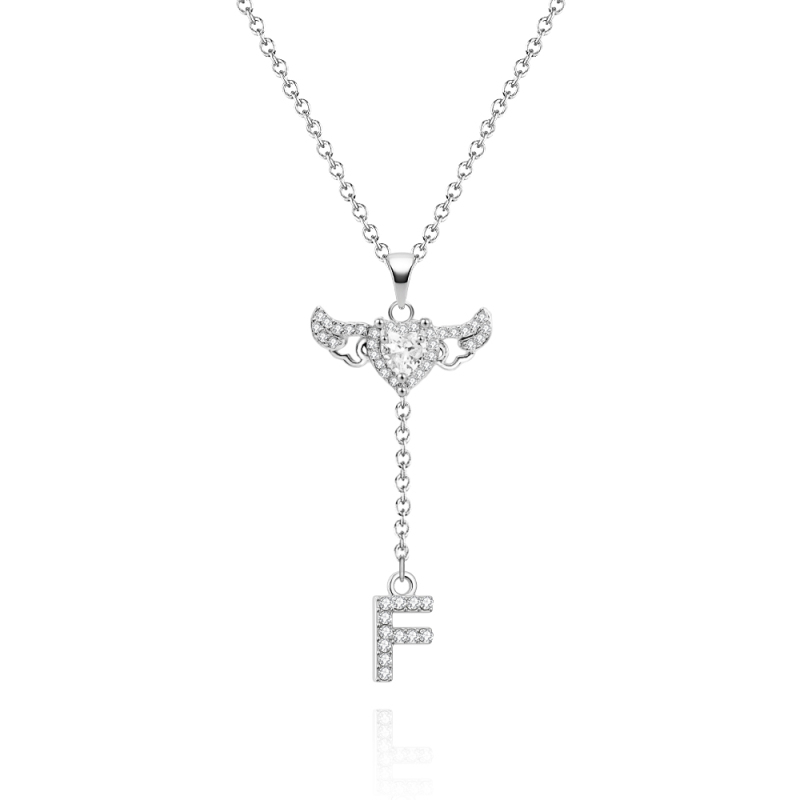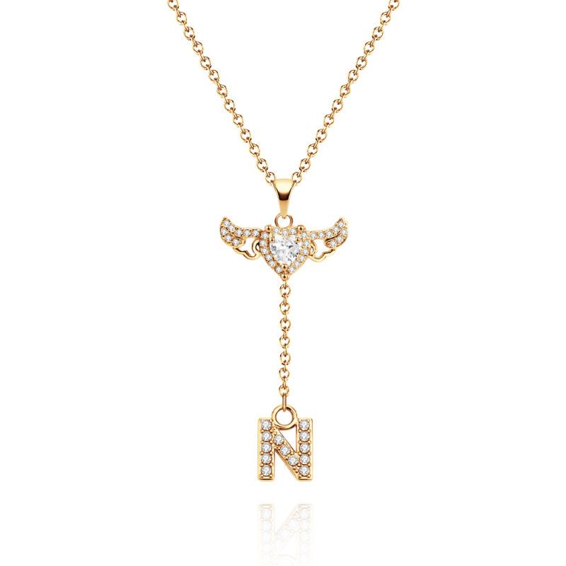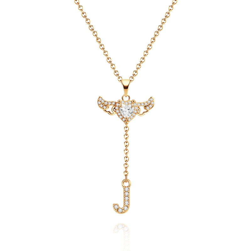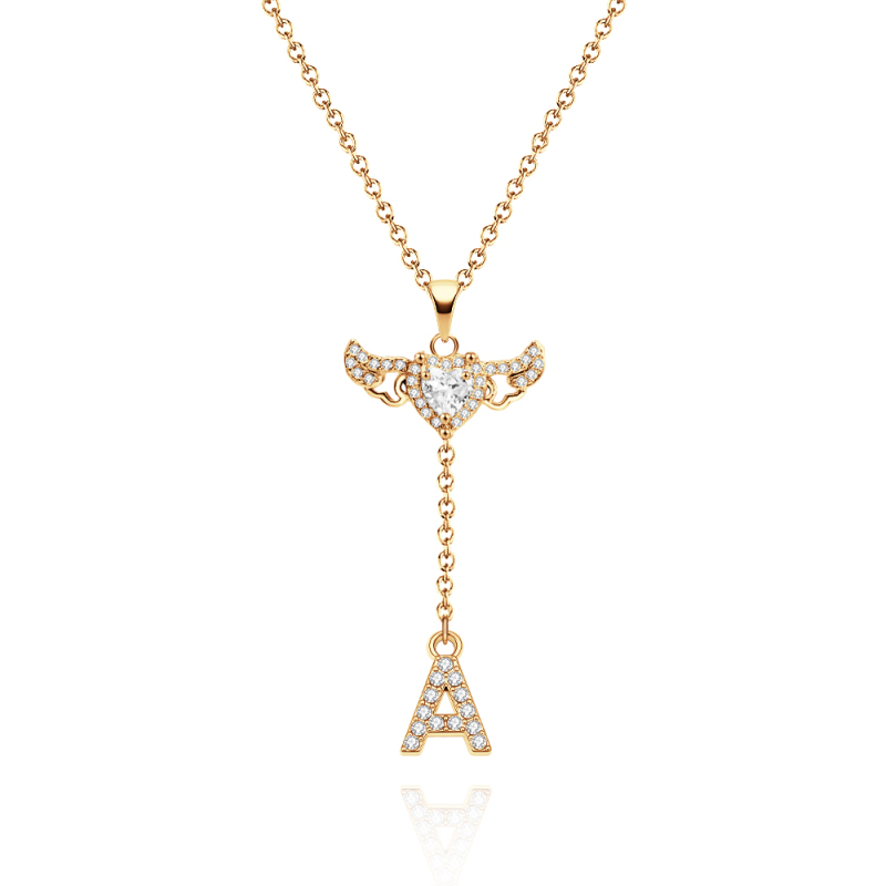 Collar Con Inicial Y Alas De Cupido Animadas. Collar Personalizado Con Colgante De Inicial Y Alas Móviles. Divertido Colgante Cinético Con Inicial. Regalo De Navidad Para Ella.