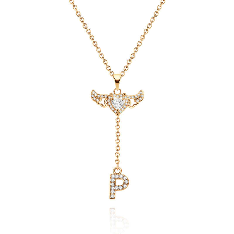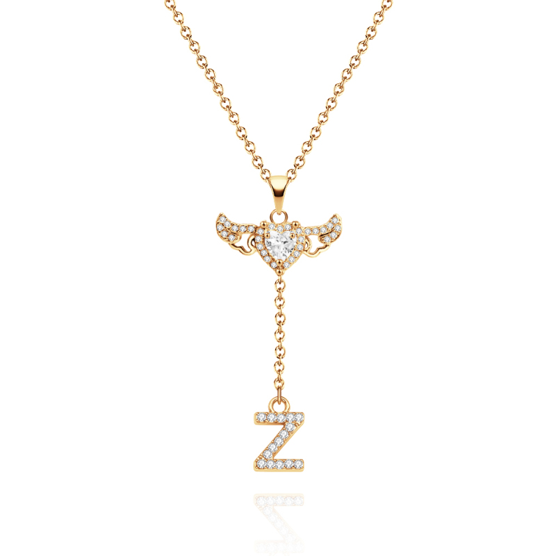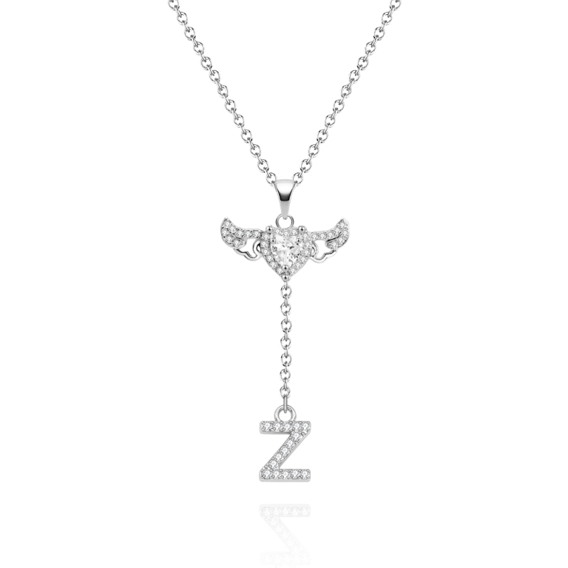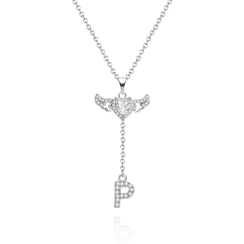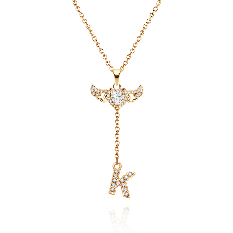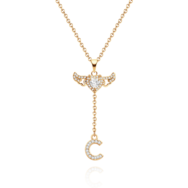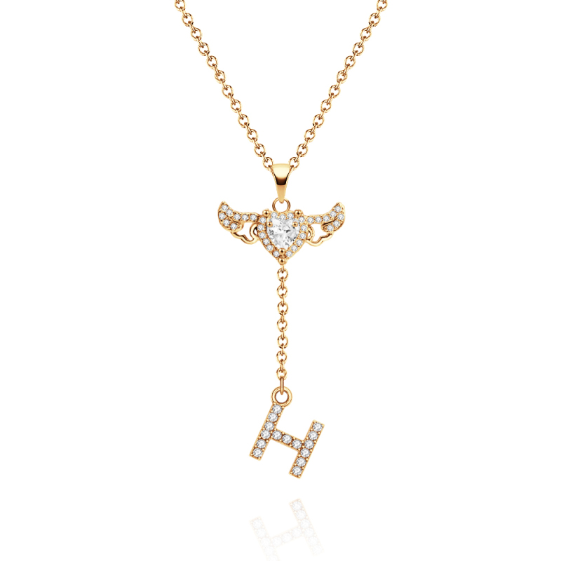Collar Con Inicial Y Alas De Cupido Animadas. Collar Personalizado Con Colgante De Inicial Y Alas Móviles. Divertido Colgante Cinético Con Inicial. Regalo De Navidad Para Ella.