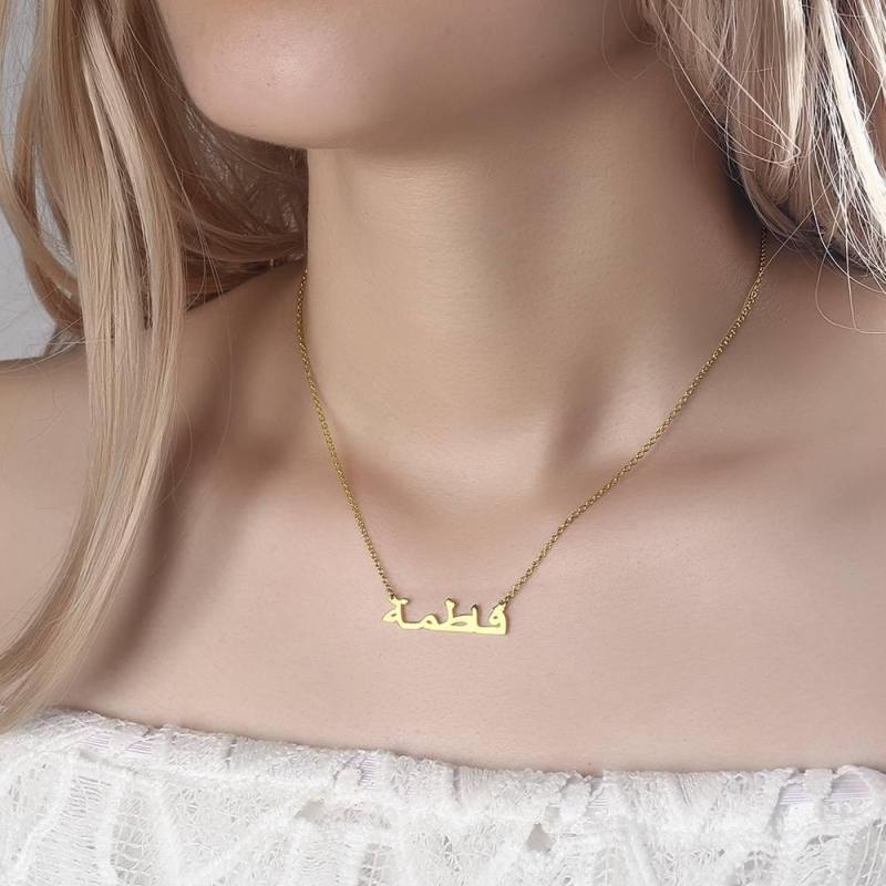 Collar Con Nombre ?Rabe Plata Ba?Ada En Oro 14K