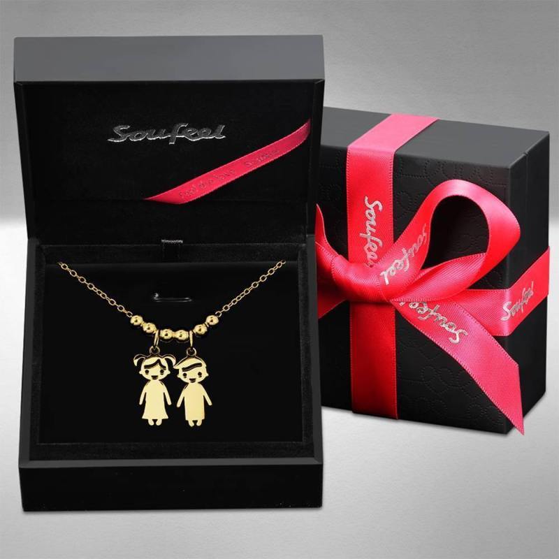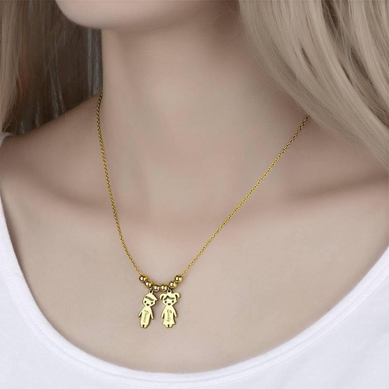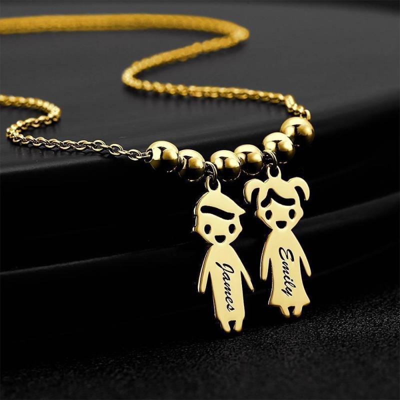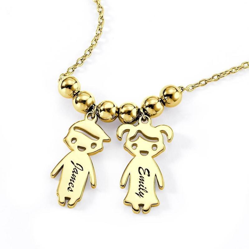 Collar De Madre Con Charms De Ni?Os Plata Chapada En Oro 14K
