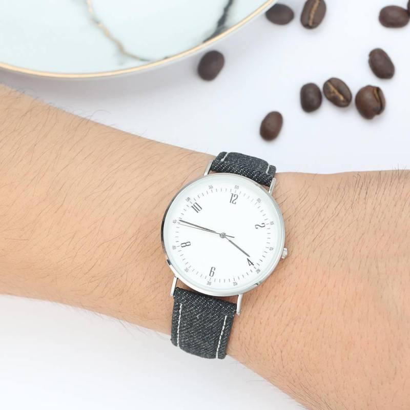 Reloj De Esfera Casual Moda Cuarzo Correa De Cuero Negra - Hombres
