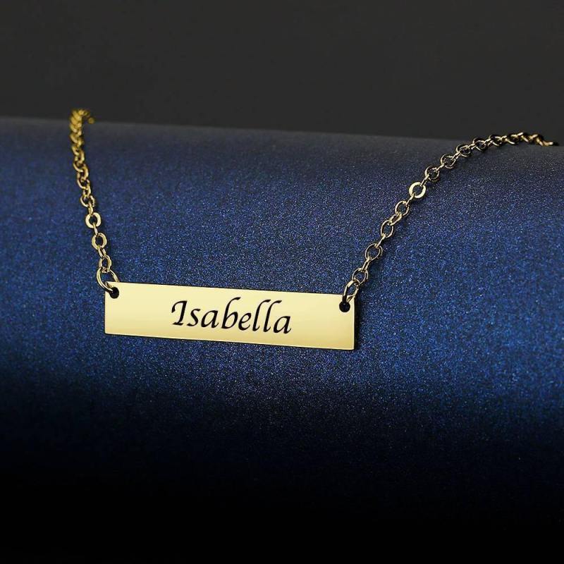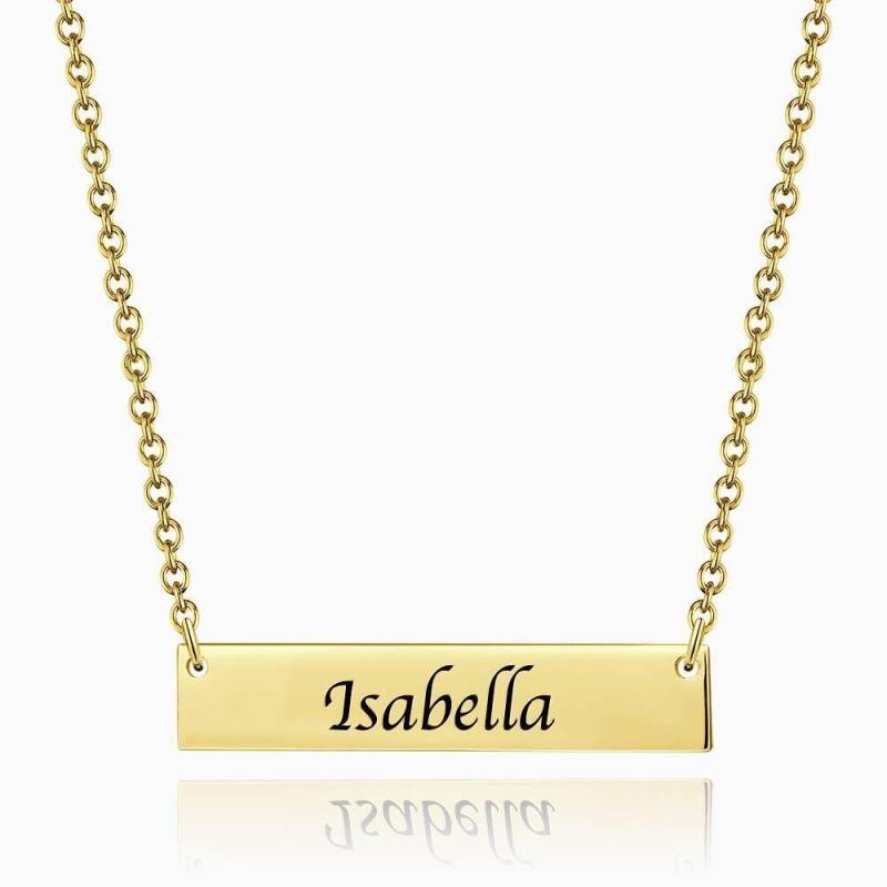 Collar De Barra Grabado Para Niños Con Baño De Oro De 14 Quilates