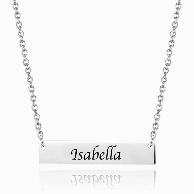 Collar Con Barra Grabada Para Niños Chapado En Platino