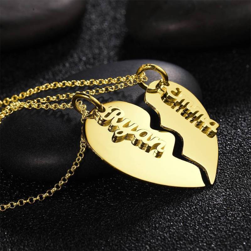 Collar De Pareja, Collar Con Nombre Corazón Roto 14K Chapado En Oro - Plata
