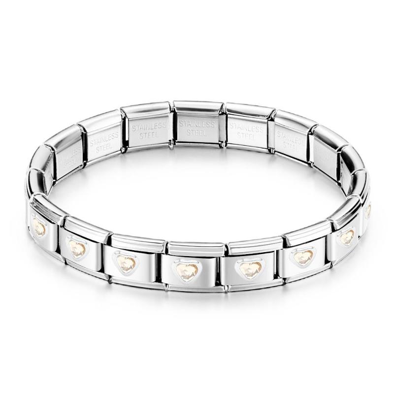 Pulsera De Encanto Italiano Vintage Con Gema De Corazón Amarillo Crema