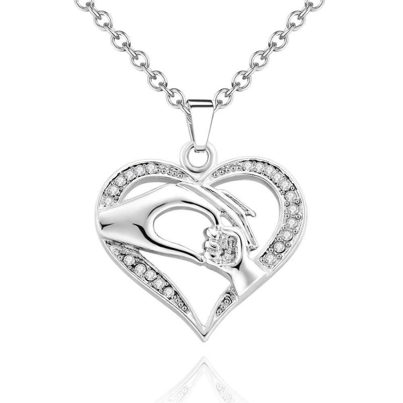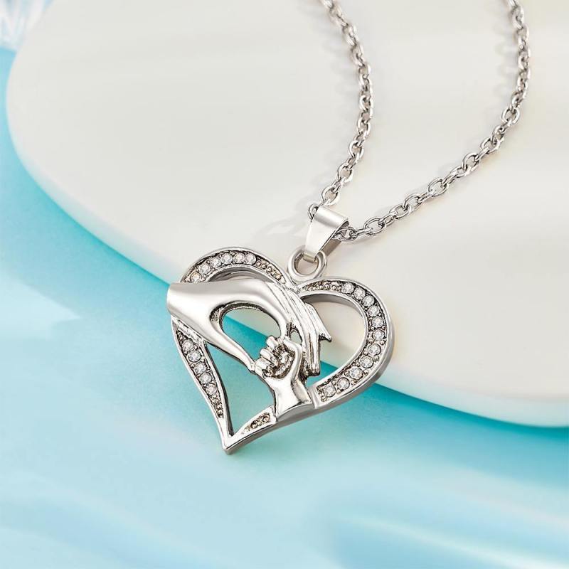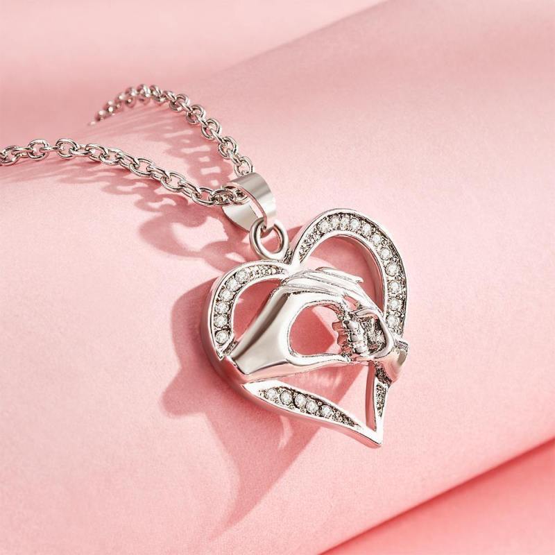 Collar Creativo Mano En Mano Colgante De Corazón Regalo Plata