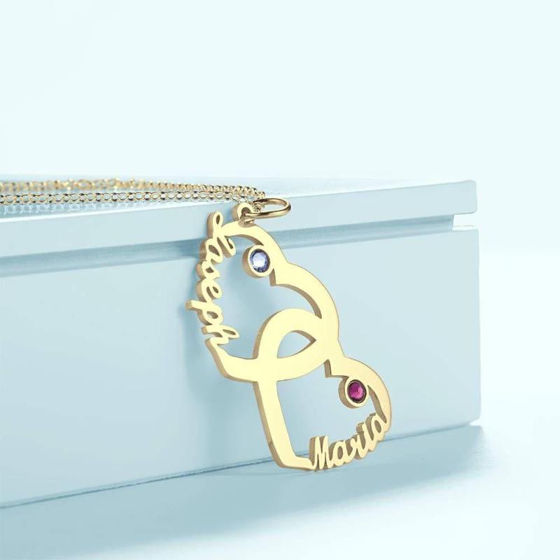 Collar De Piedras De Nacimiento, Collar Con Nombre En Forma De Corazón Ba?Ado En Oro De 14K - Plata