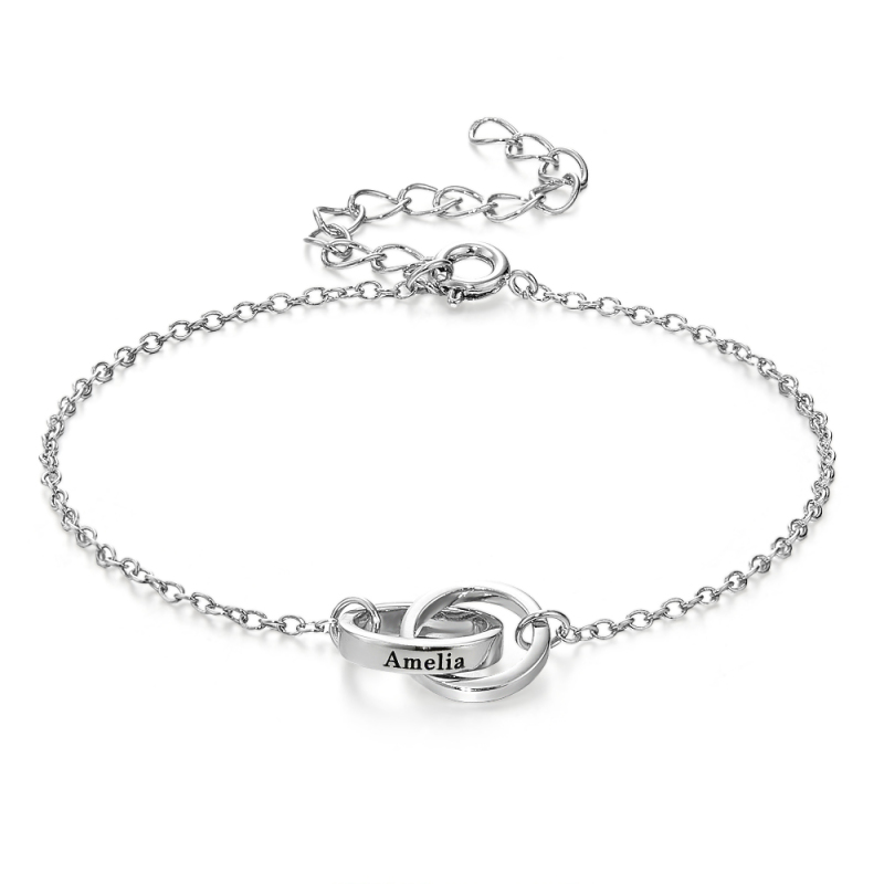 Pulsera personalizada con círculos entrelazados y nombre - Pulsera personalizada de doble círculo