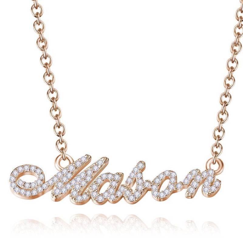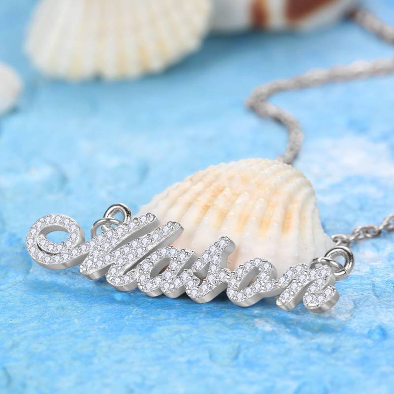 Collar Con Nombre De Cristal Personalizado, Joyería De Recuerdo Plata