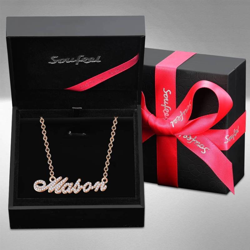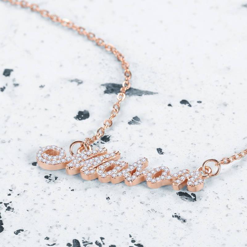Collar Con Nombre De Cristal Personalizado, Regalo De La Dama De Honor De Plata Ba?Ado En Oro Rosa