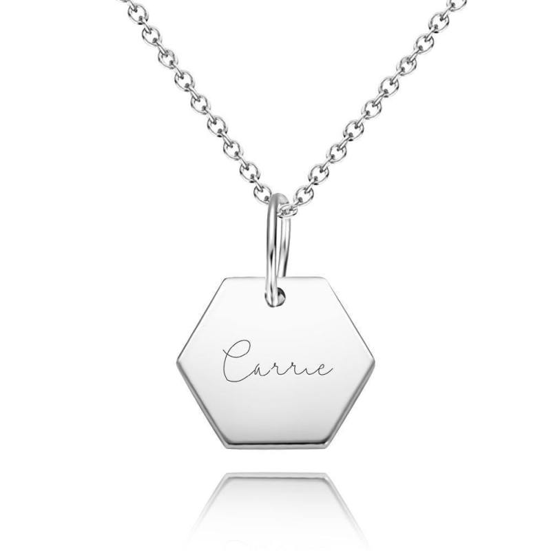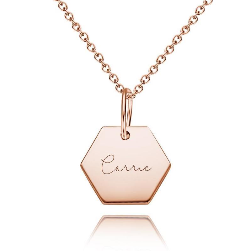 Collar Personalizado Con Etiqueta De Hexágono Chapado En Oro De 14K