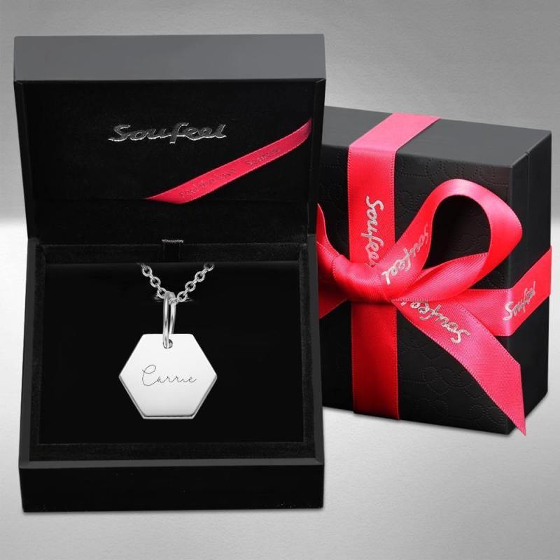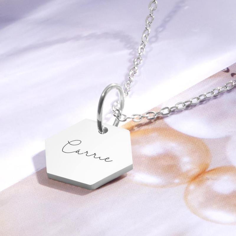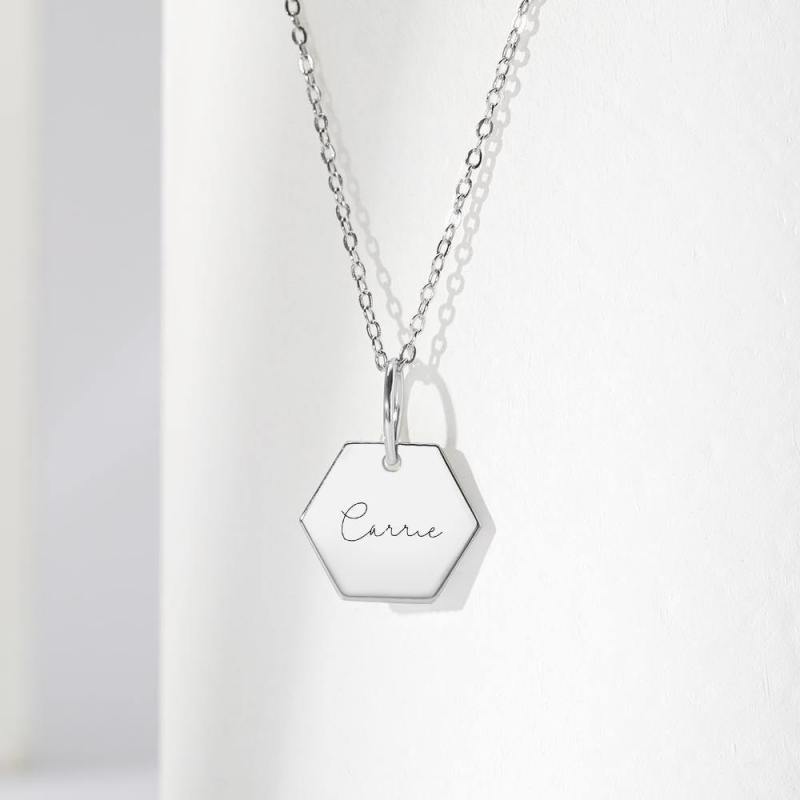 Collar Hexágono Grabado A Medida Collar Tag Plata