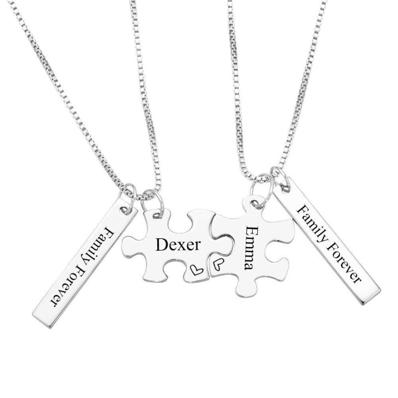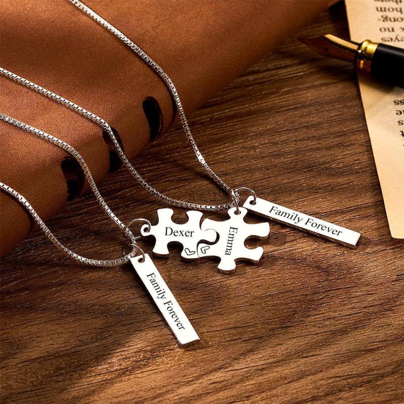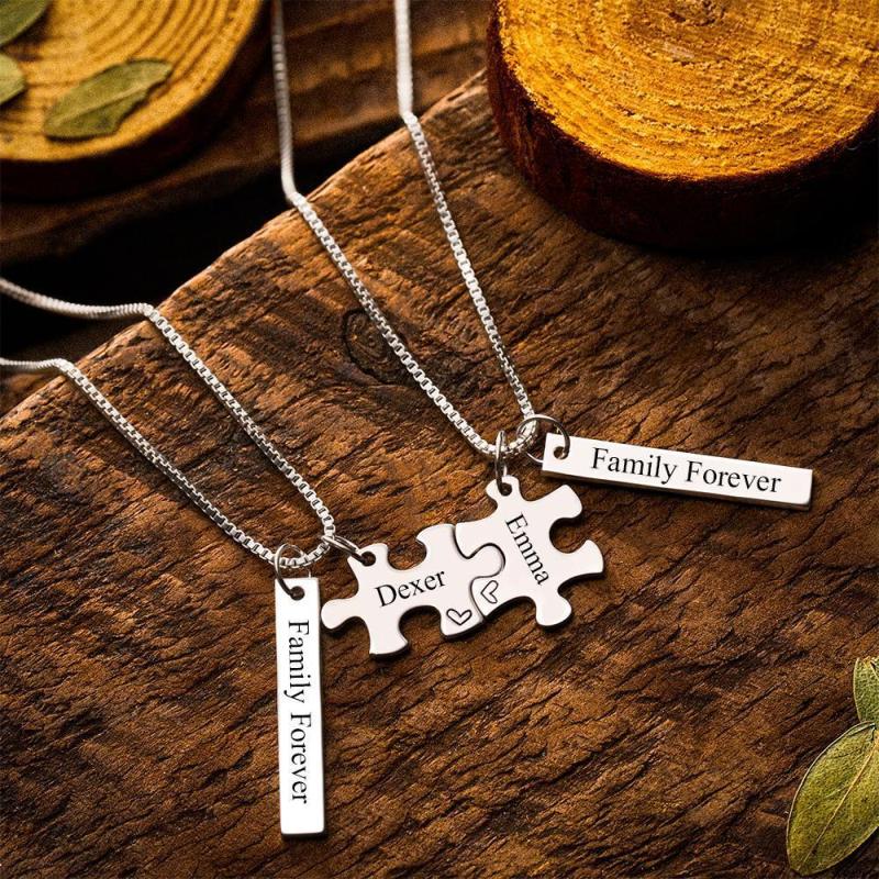 Personalizado Grabado Collar De Bloque De Collar De Rompecabezas De Los Regalos De La Pareja