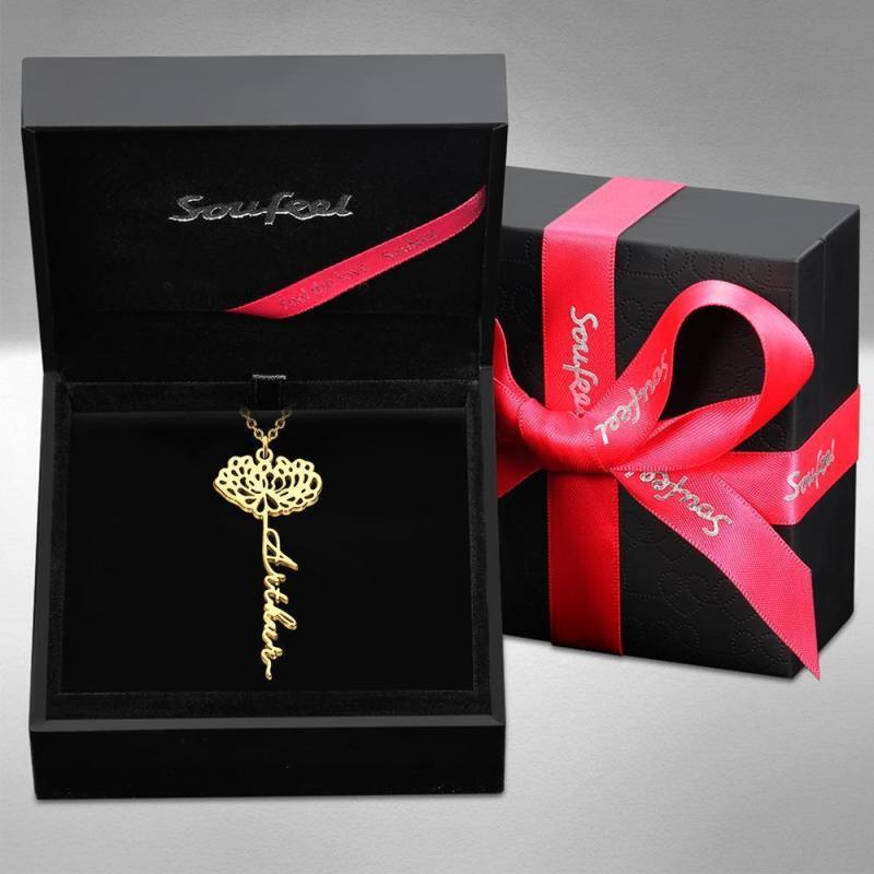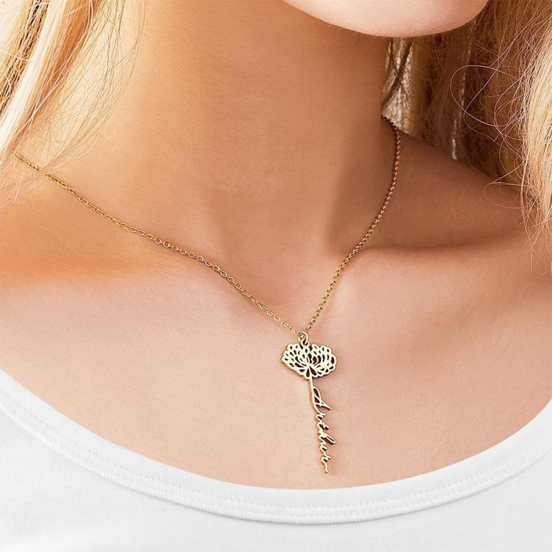 Collar Grabado Personalizado En Forma De Rosa Para Regalo Conmemorativo-Oro