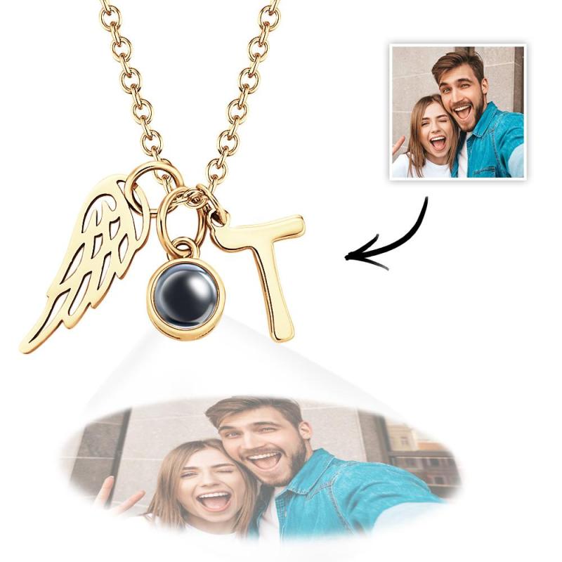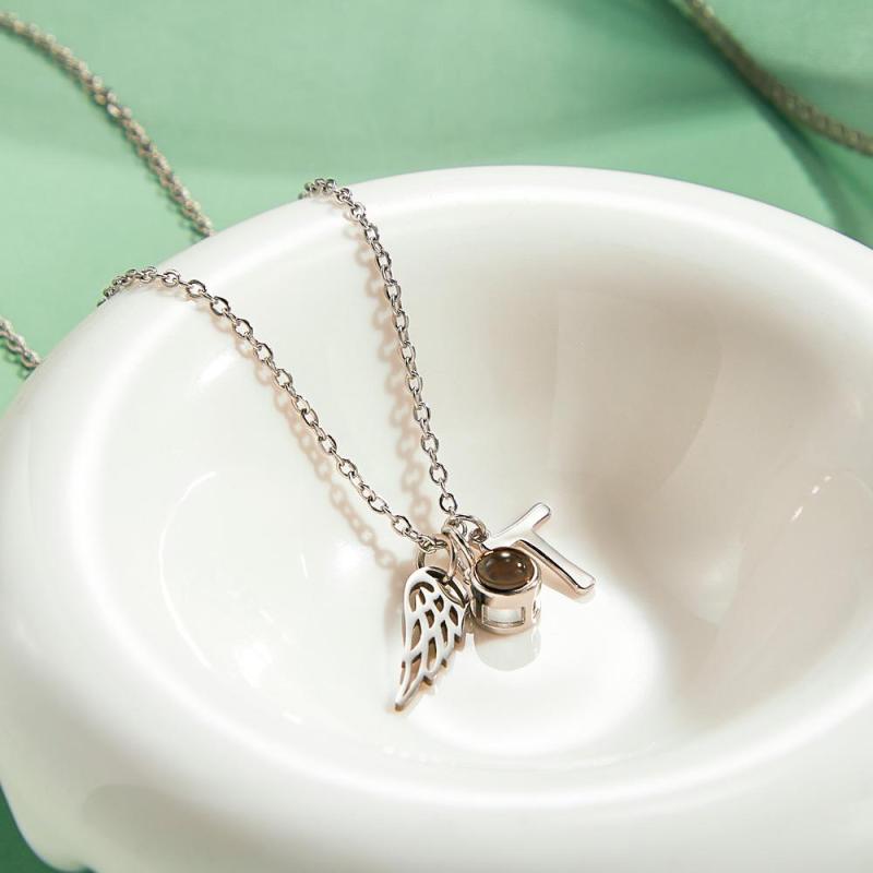 Collar De Proyección De Iniciales Personalizadas Alas De Ángel Regalos Creativos