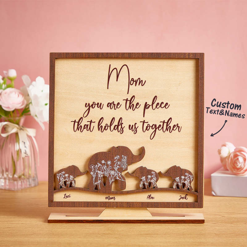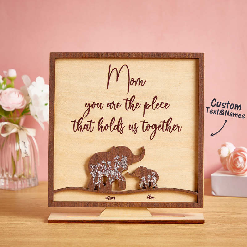 Letrero De Madera Personalizado Con Elefantes Para Mamá Y Bebé, Decoración Personalizada Para El Hogar, Regalo Del Día De La Madre