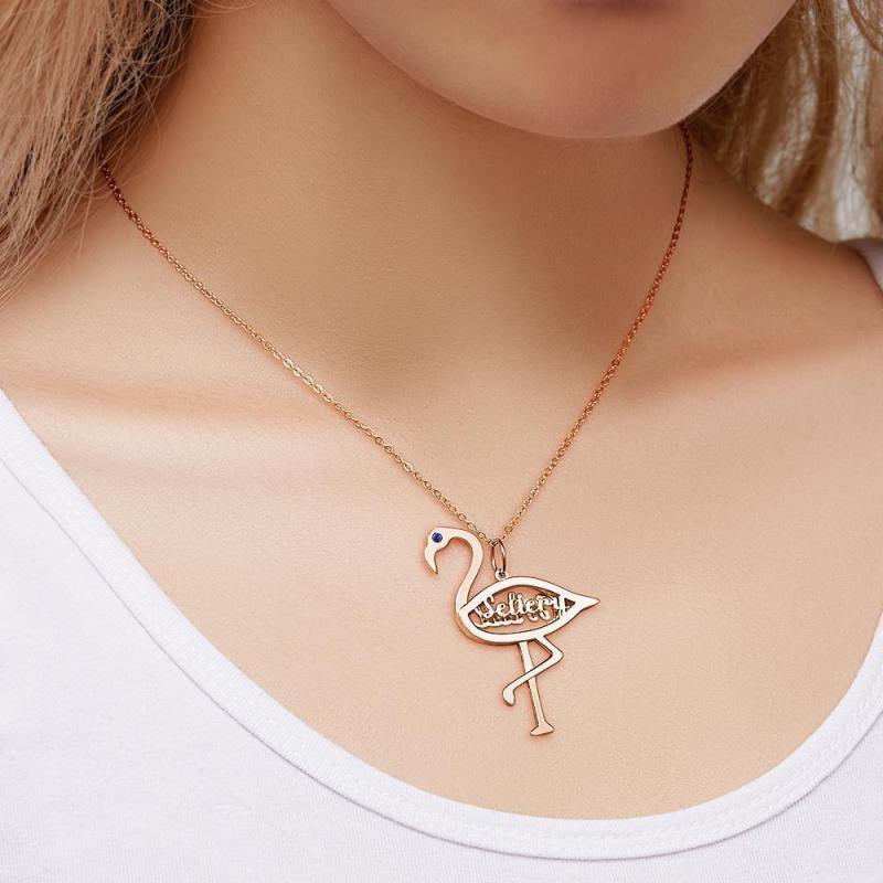 Collar Personalizado Con El Nombre De La Piedra De Nacimiento Flamingo Colgante Regalos De Cumpleaños De Oro Rosa Chapado En Plata