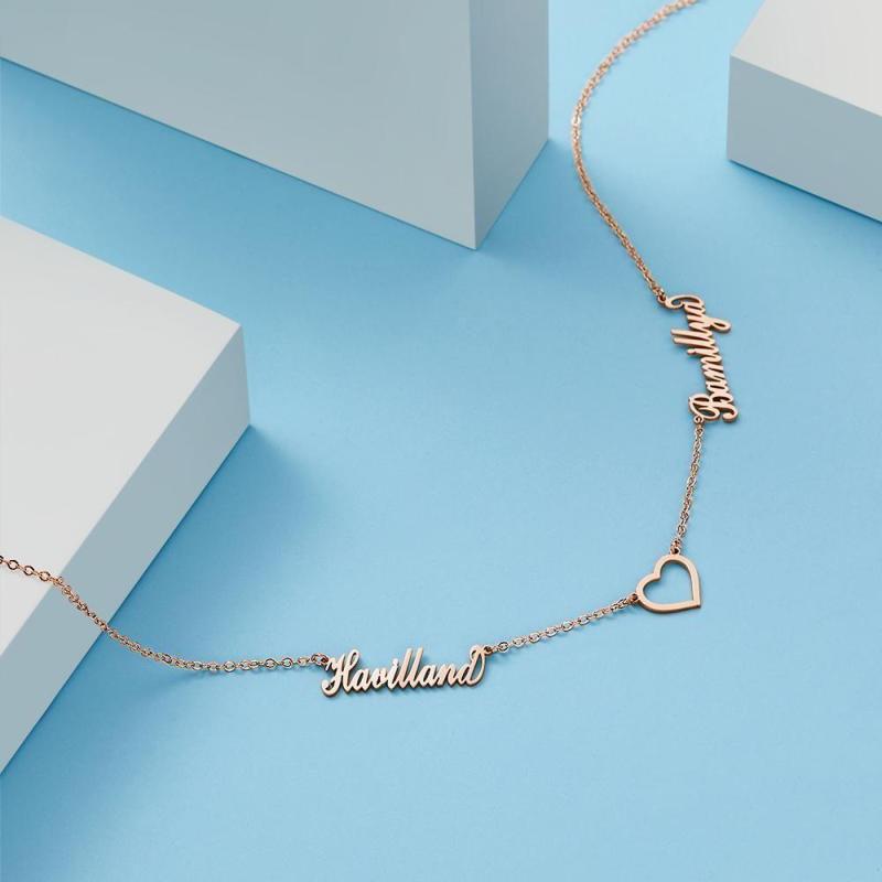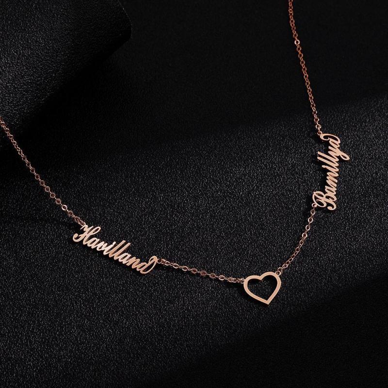Collar Con Nombre Personalizado Collar Con Nombre Doble Regalo En Memoria De Ella Chapado En Oro Rosa