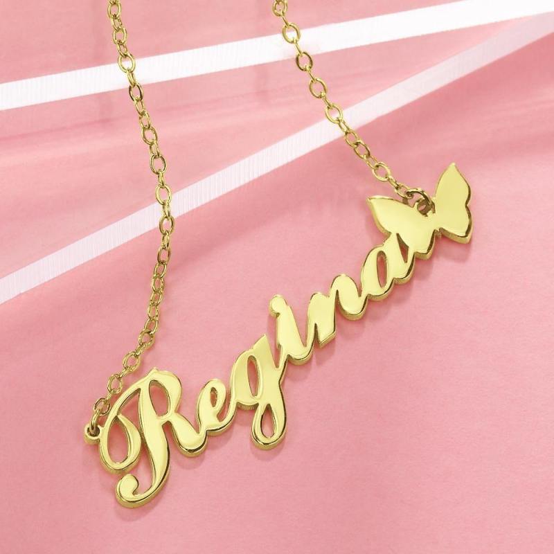 Collar Con Nombre Para Novia Chapado En Oro De 14 Quilates Con Colgante De Mariposa