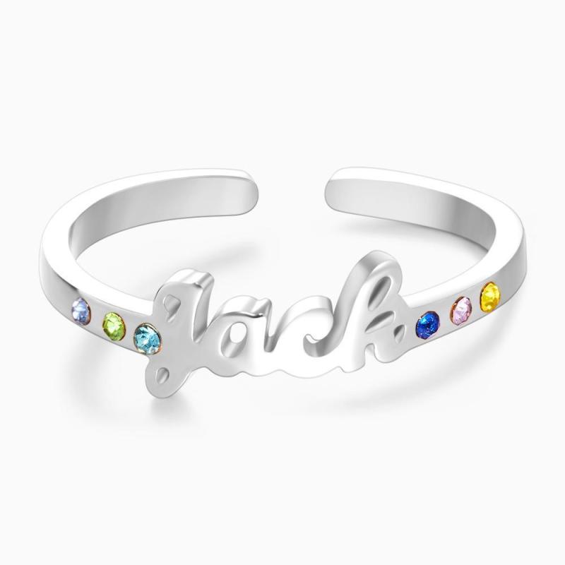 Anillo De Nombre Personalizado Seis Piedras Natales Regalo De San Valentín