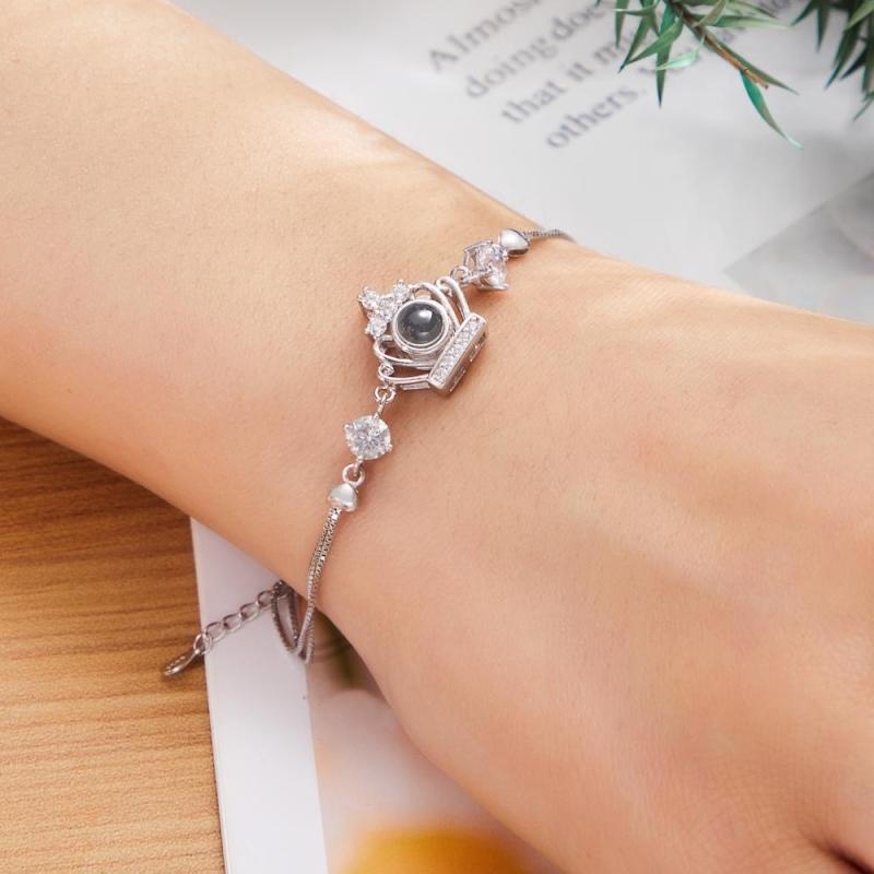 Pulsera De Corona Con Proyección De Fotos Personalizada Pulsera De Plata De Ley Personalizada