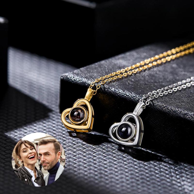 Conjunto De Collar De Proyección De Fotos Personalizado, Regalos Temáticos De Pareja Huecos En Forma De Corazón, Dos Piezas