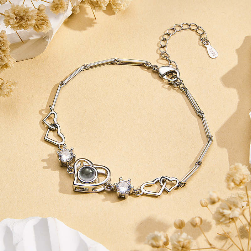 Pulsera De Proyección Personalizada Pulsera Grabable Con Recuerdos De Pareja De Corazones Para Ella