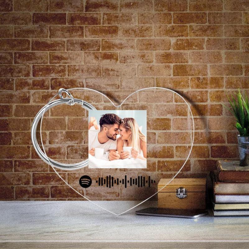 Llavero código Música escaneable personalizado Llavero grabado con foto de la canción favorita de Música en forma de corazón