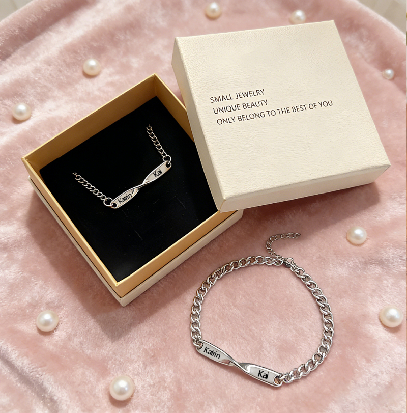 Pulsera Personalizada Con Nombre En Espiral Para Parejas: Brazalete Personalizado Con Espiral Grabado Para Él Y Para Ella. Regalo Para Pareja.