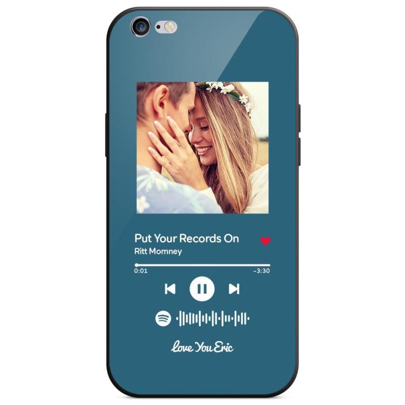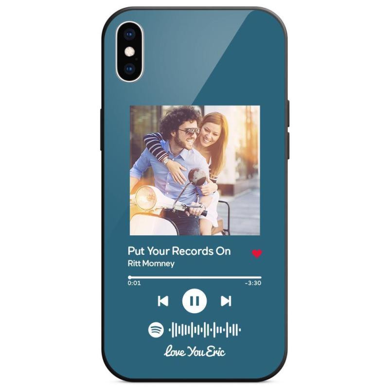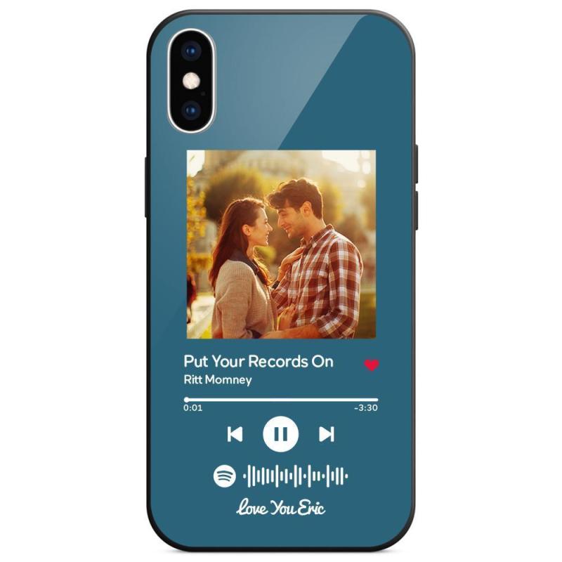 Funda Música Code Music Para Iphone Con Texto Escaneable Y Grabado De Una Canción Musical Personalizada En Cristal Templado - Azul