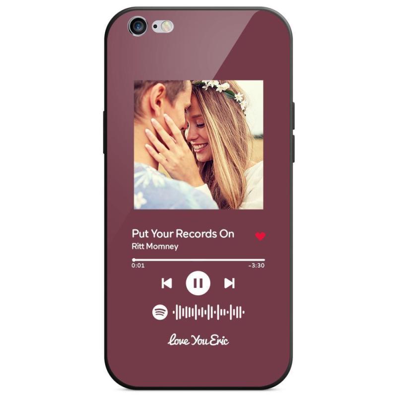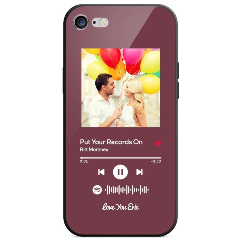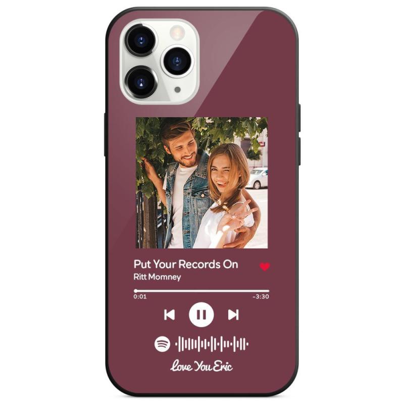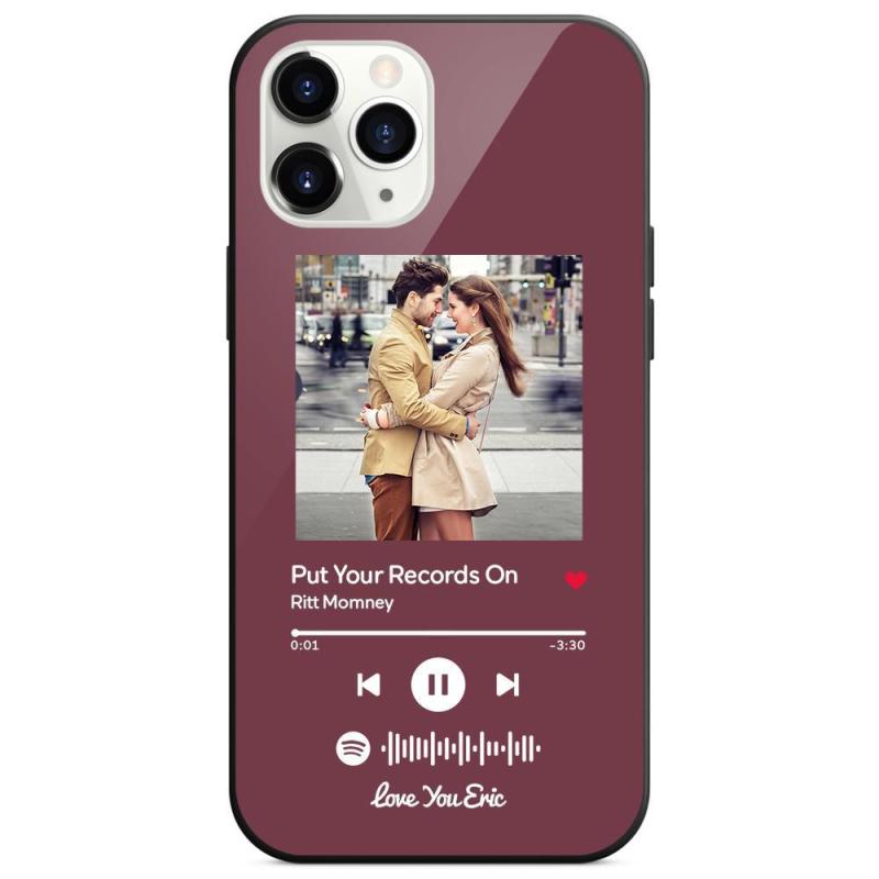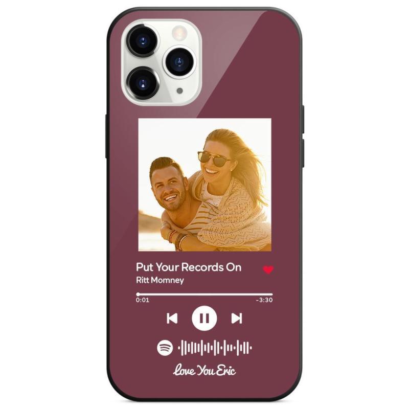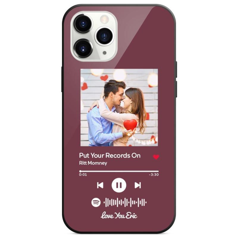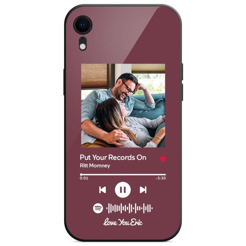 Funda Para Iphone Con Código Música Personalizado Con Texto Escaneable Grabado Canción Musical Vidrio Templado - Morado