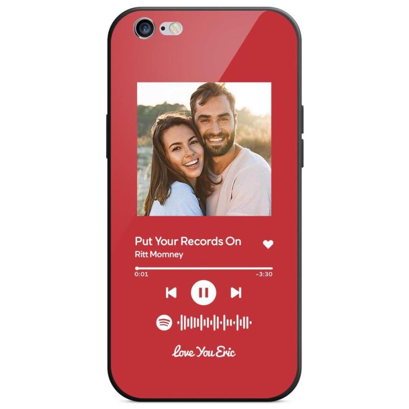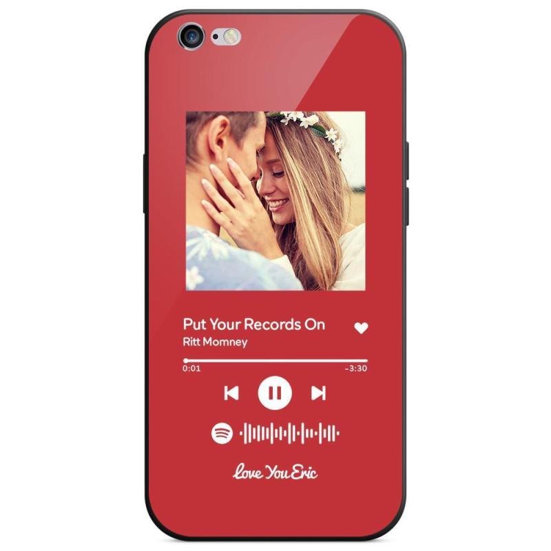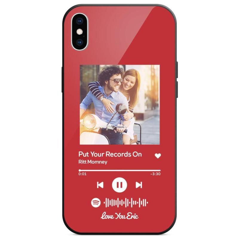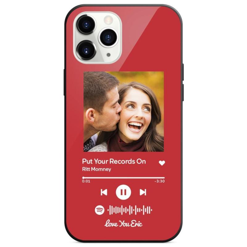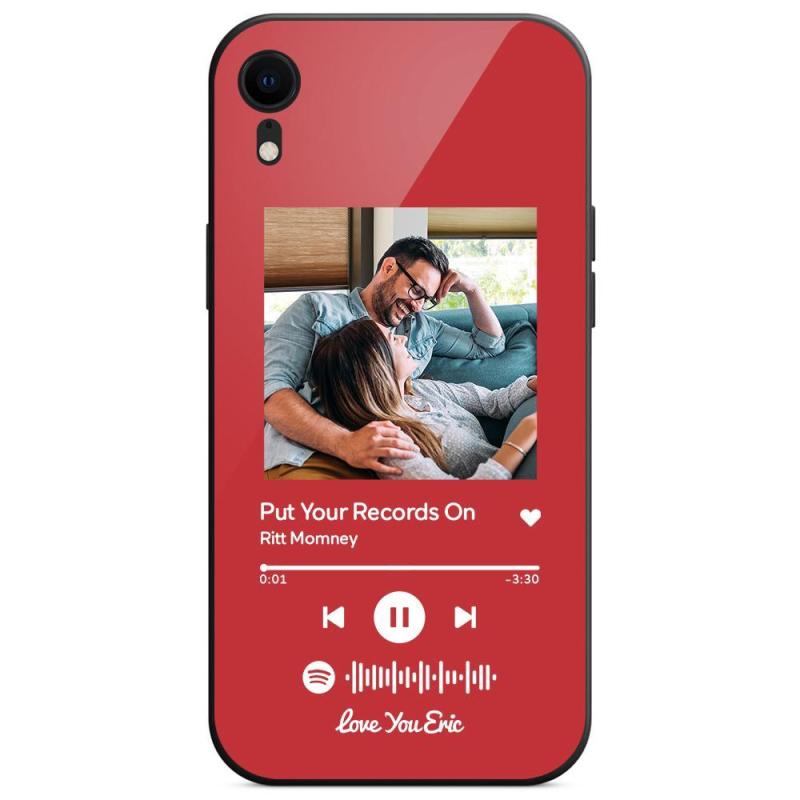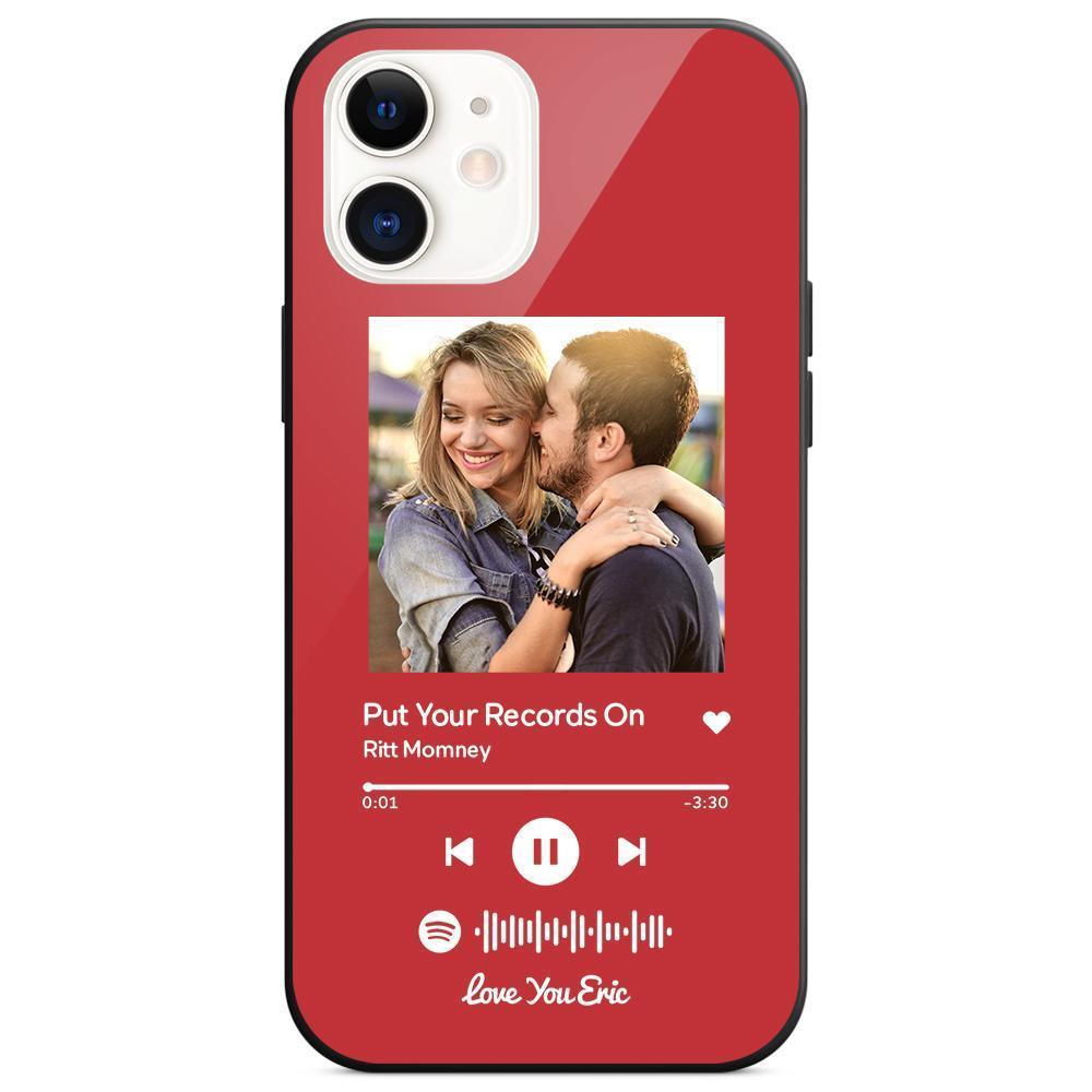 Funda Música Code Music Para Iphone Con Cristal Templado Con Texto Escaneable Y Grabado De Una Canción Musical Personalizada - Rojo