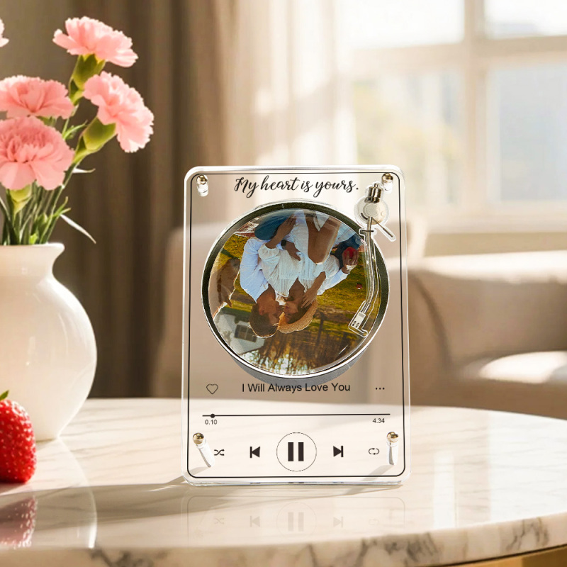 Tocadiscos Giratorio Personalizable Con Placa Fotográfica. Placa Musical Personalizada Con Foto Giratoria. Placa Magnética Para Fotos Y Música Con Altavoz.