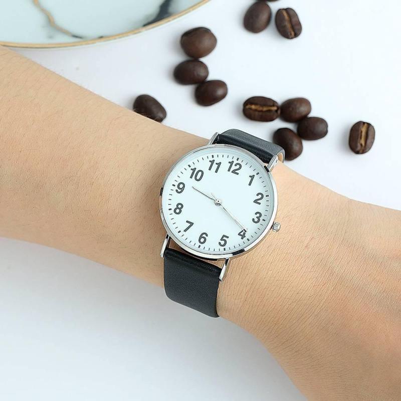 Reloj Con Esfera Digital De Cuarzo Con Correa De Cuero Negro - Mujer