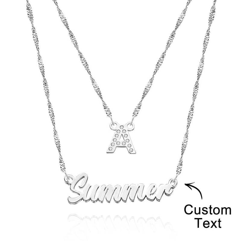 Collar Con Nombre De Cadena Doble, Collar En Capas, Collar Con Inicial De Oro Personalizado, Collar Con Nombre De Letra Personalizado, Regalo Para Ella
