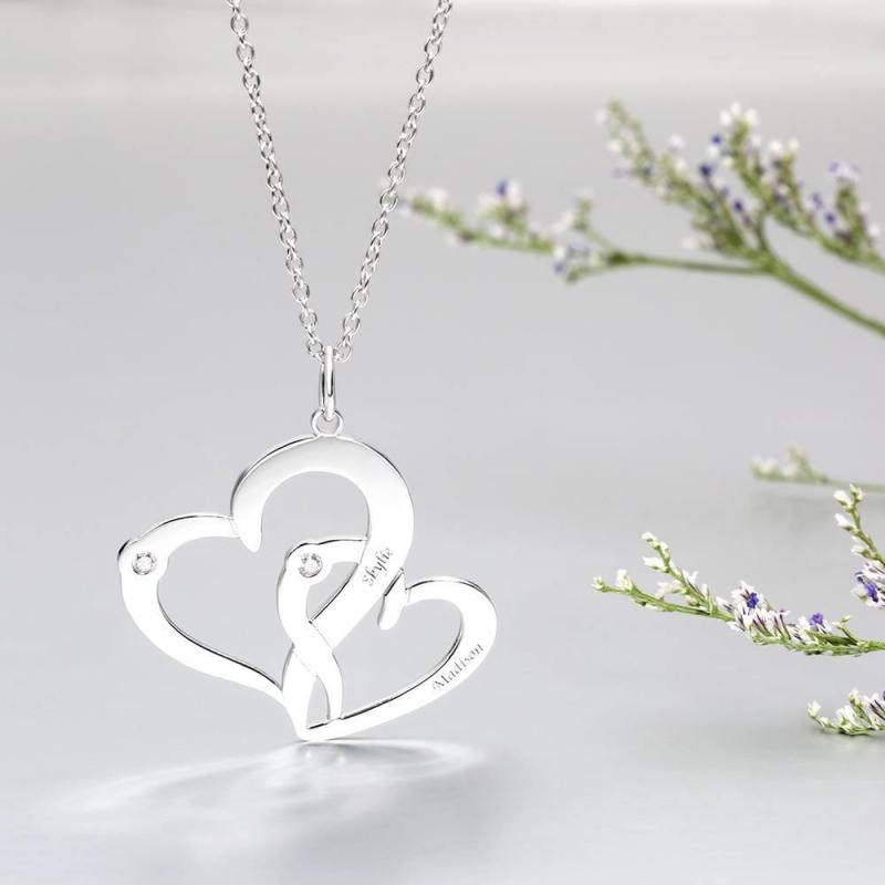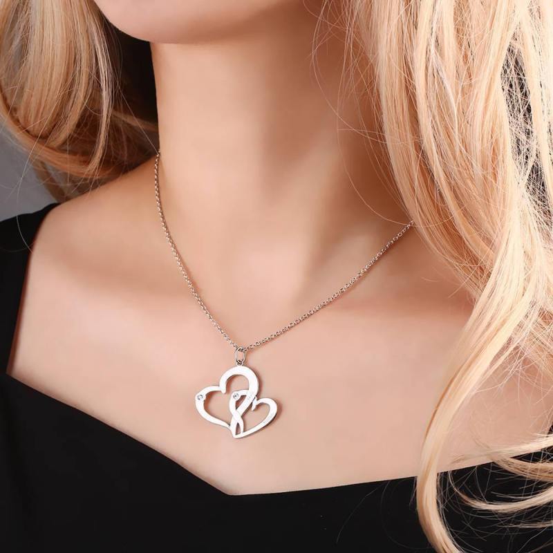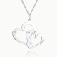 Collar Grabado Dos Corazones Con Piedra De Nacimiento Plata