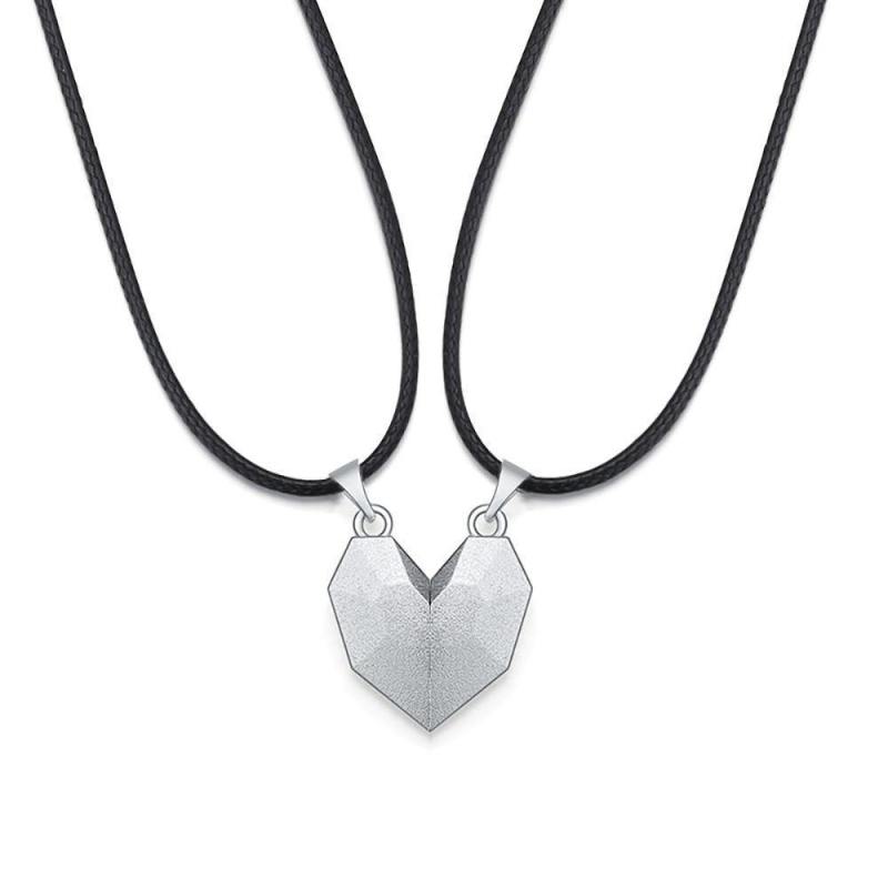 Collar Magnético Grabado En Forma De Corazón 2 Piezas Regalos Para Ella