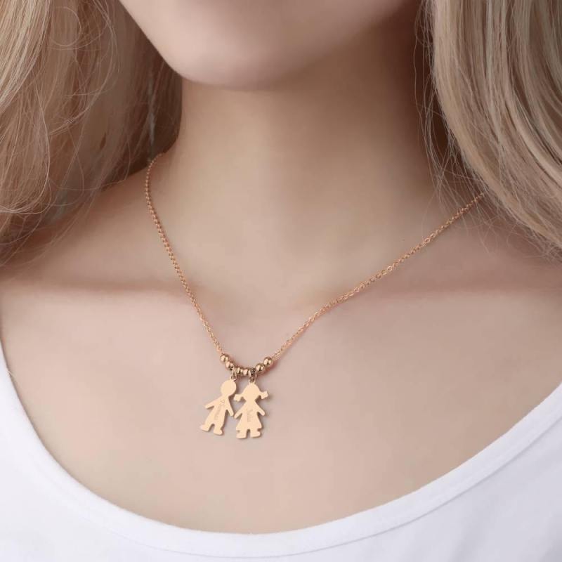 Collar Grabado, Collar Con Encanto Para Ni?Os Joyería De Mamá Chapado En Oro Rosa