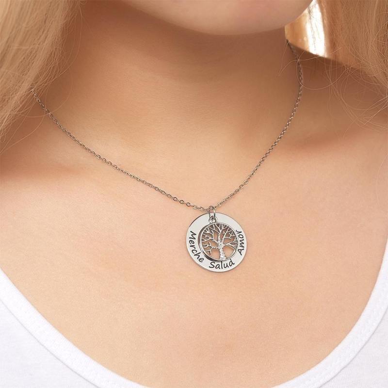 Collar Grabado Círculo Colgante Regalo Para El ?Rbol De La Familia Collar Regalo De Aniversario Plata