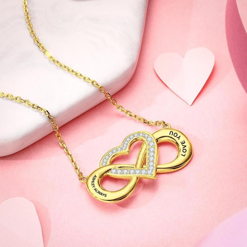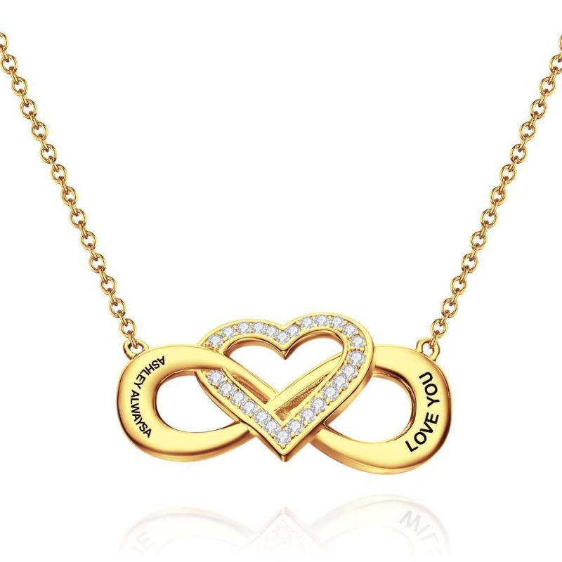 Collar Grabado Collar Infinito Con Nombre Del Corazón Regalos Para Parejas 14K Chapado En Oro