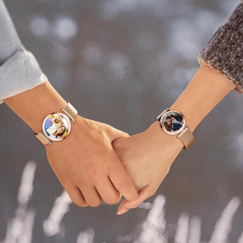 Reloj Con Foto Grabado Aleación Pulsera Correa Oro Rosa 41 Mm Hombre