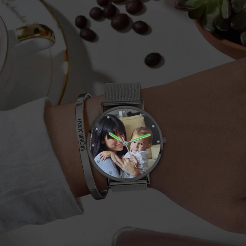Reloj Con Foto Grabado Con Puntero Luminoso Pulsera De Aleación Reloj Con Foto 40Mm - Unisex