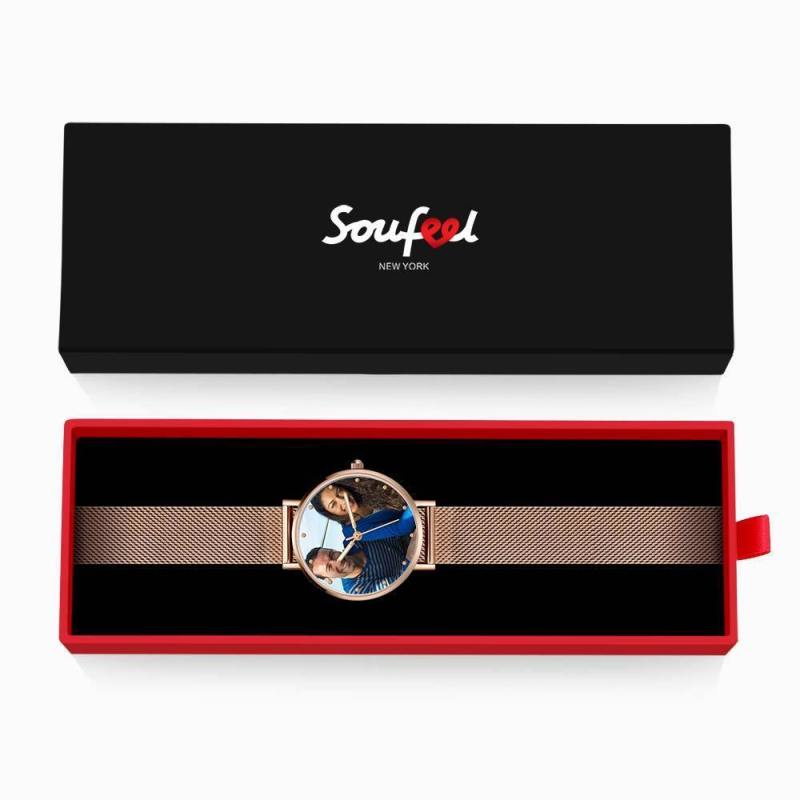 Reloj Con Foto Grabado Con Puntero Luminoso Pulsera De Aleación De Oro Rosa Reloj Con Foto 40Mm - Unisex