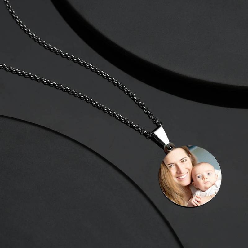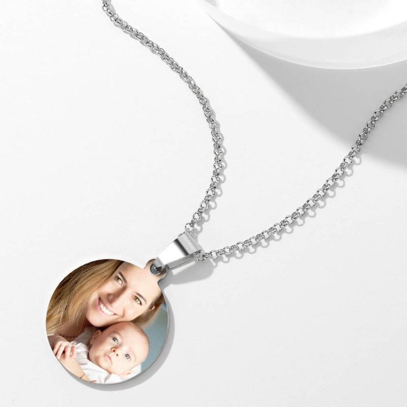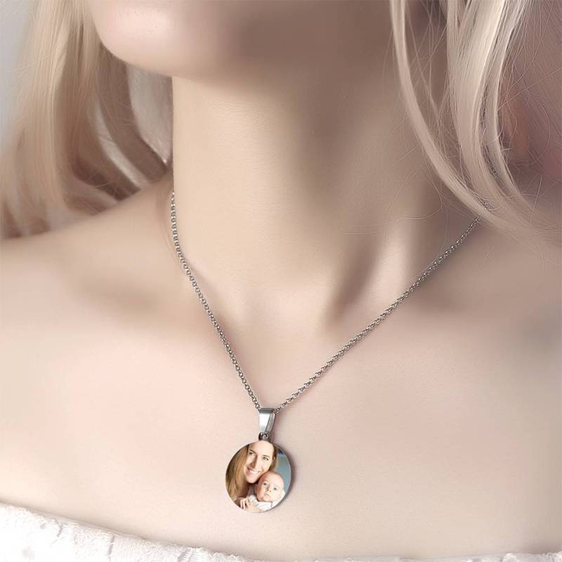 Collar De Fotos Con Etiqueta Redonda Grabada De Acero Inoxidable