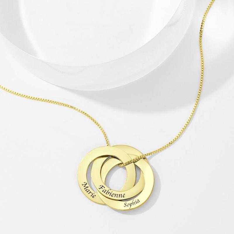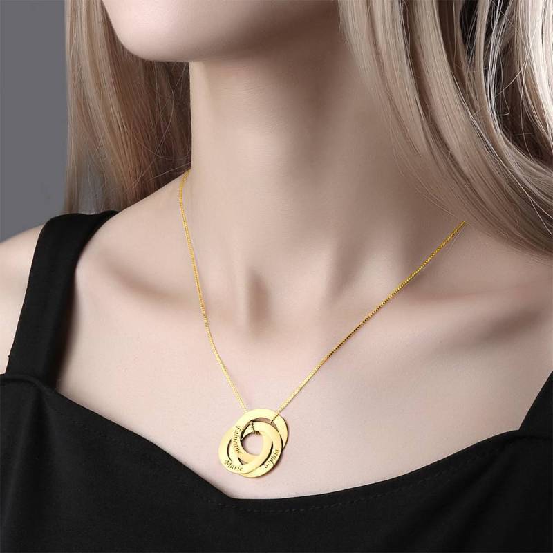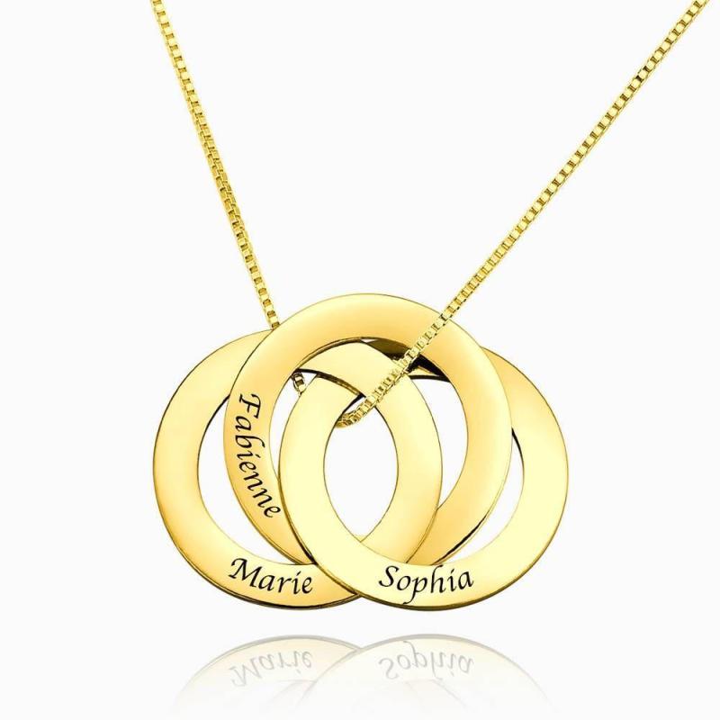 Collar De Tres Discos Grabado En Plata Chapada En Oro 14K