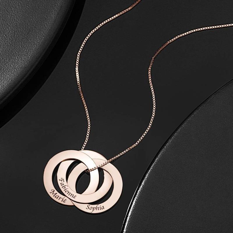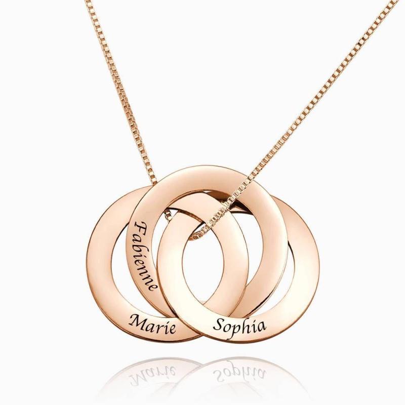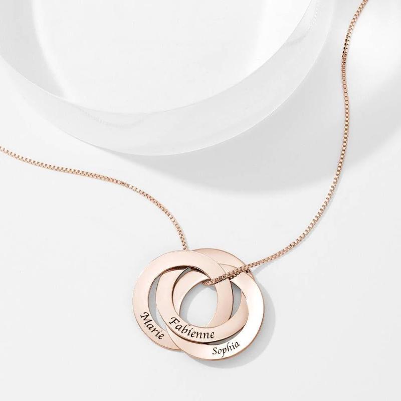 Collar De Tres Discos Grabado En Plata Chapada En Oro Rosa