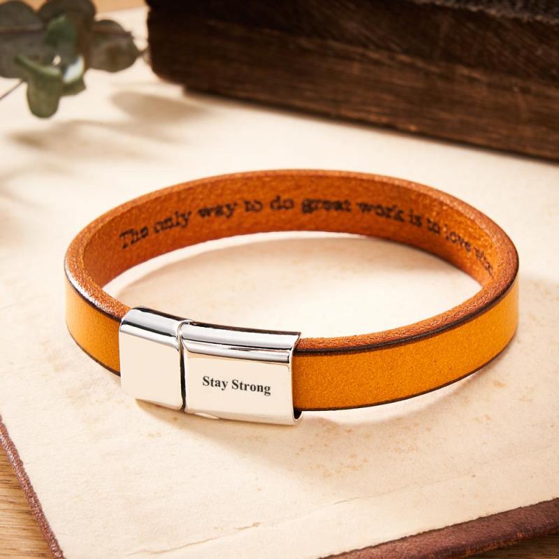 Exquisita Pulsera De Cuero Grabable, Pulsera Brillante Para Hombre, Regalo Del Día Del Padre