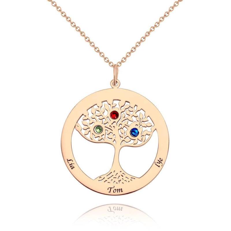 Collar ?Rbol De La Familia Con Piedra De Nacimiento, Collar Grabado Regalo De La Familia 14K Chapado En Oro - Plata