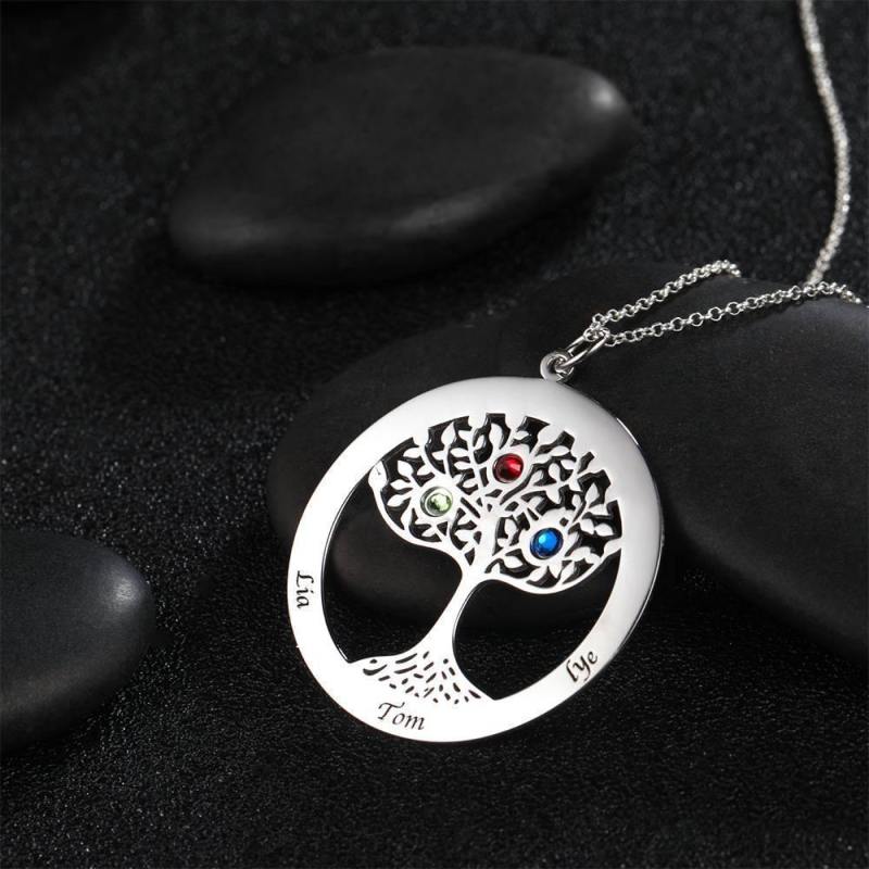 Collar ?Rbol Familiar Con Piedra De Nacimiento, Collar Grabado Family Gift Plata