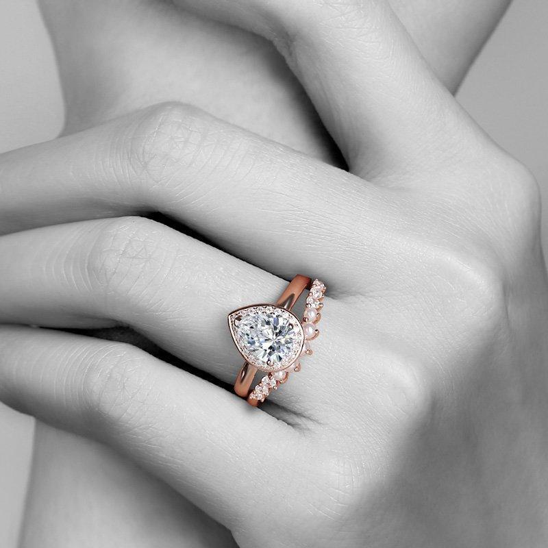 Conjunto De Anillo De Bodas De Corona Femenina De Amor En Oro Rosa Y Plata De Ley 925
